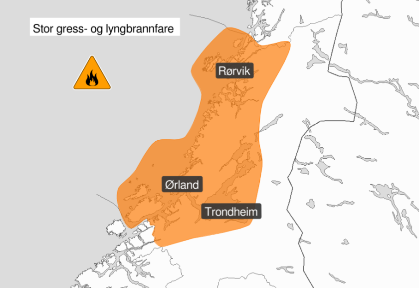 Det er den 16.04.26 varslet om stor skogbrannfare i deler av Trøndelag, inkludert Fosen. Ikke bruk åpen ild, da vegetasjonen kan svært lett antennes.